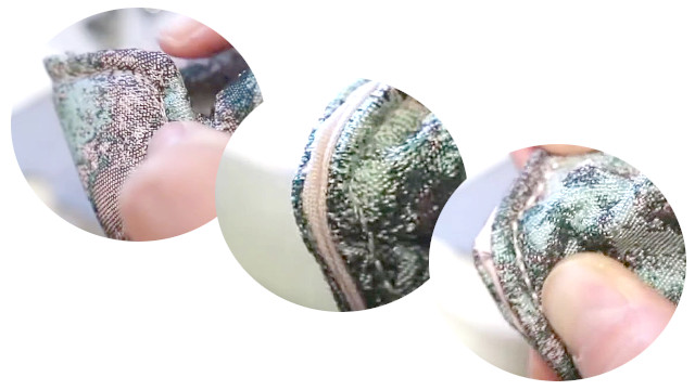 右下の写真のずれは、重なりとしてではなく、元のひっくり返し前の「中表」のステッチが正確ではなかったということだと解析。