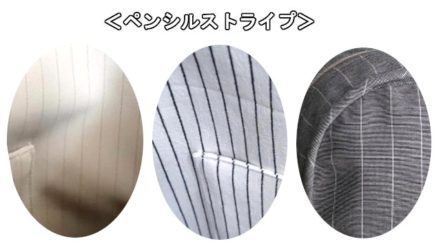 ペンシルストライプ:3種ともバッグの裏地に使用したもの。「チョークストライプ」との区別が曖昧です。