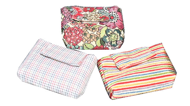 蓋を開けたところ:ふんわりしてかわいい印象、裏地の生地の種類が違い一番左も奥ゆかしいです。