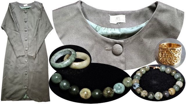 黄味のグリーンが濃淡の展開になった融通はコーデの易しさへ、マルチカラー大粒翡翠の迫力と渋みカラーの美しさ