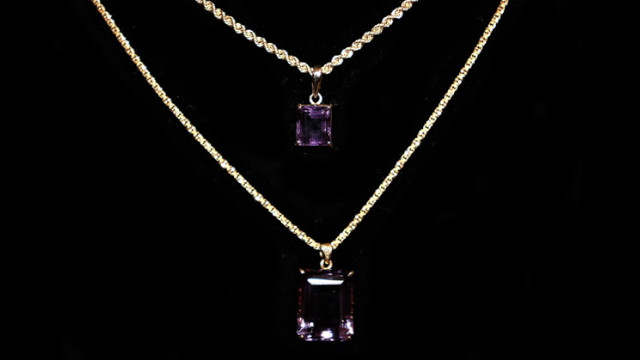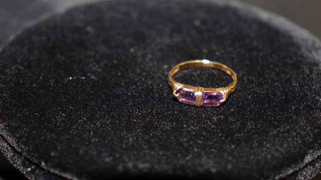 赤味パープルカラーのアメジストはK18YG台に高貴に映えた、普遍的な1点ずつが重ねられ束ねられることで高まる迫力