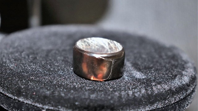 鼈甲リングの焦げ茶色の暗さは十勝石の色調に合い、足並みを揃えています。
