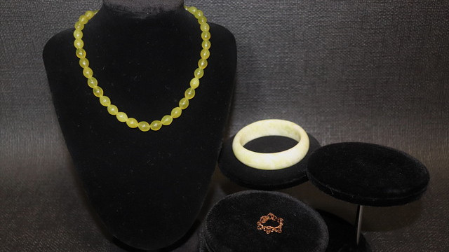 エキゾチックなライム色の「マスカットジェイド」のネックレス、留め具パーツがK18YGの確かなレベルを持ち備えた貫禄