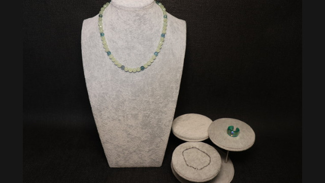 天然石の連ネックレスのカラー違いのステーション配置は柄になる、プレナイトとフローライトから始まる青緑色のまとめ