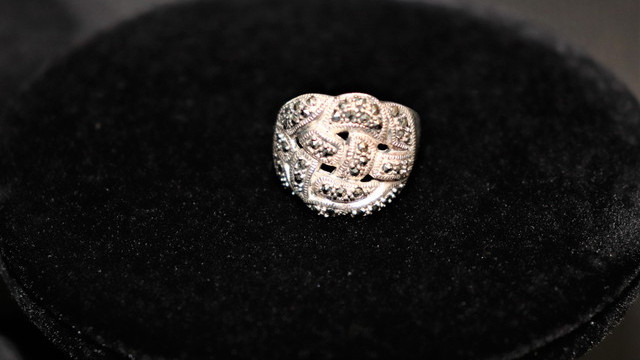 <旧48>リング:シルバー925製マーカサイトリング。柄はスネーク風な抽象柄。サイズは13号程度。