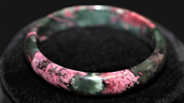 <旧48>バングル:「梅花玉」のくり抜きバングル。中国河南が原産。火山岩のオブシディアンや黒曜石の仲間。