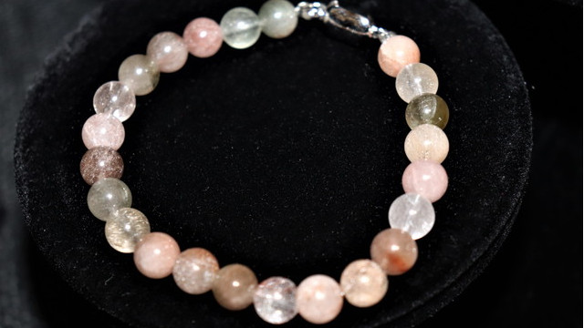<旧57>ブレスレット:ルチルクォーツのマルチカラーの一連。シルバークラスプの留め具含む22cm。