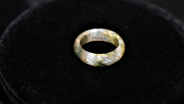 <旧57>リング:「モスアゲート」という内包物が藻のような石。実際は藻ではなく「クローライト」。17号。