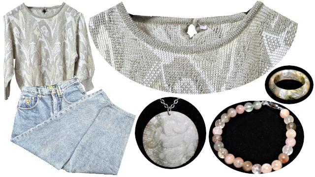 お洋服とのコーデ例:示し合わせたかのようにペンダントが馴染み溶け込むサマーセーター。この集まりはまさにミラクル。