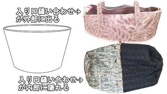 下の、「中表」で入り口を繋げて最後に裏地に作った返し口からひっくり返すやり方(参考の書籍もこちらです)を2025年からは採用しています。