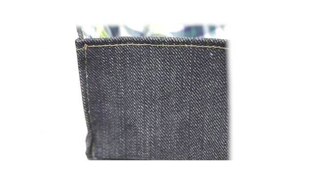 セルヴィッチデニムは一般的な濃紺、チェックはネイビーxイエロミックスのコントラスト効果がすっきりと出る相性の良い組み合わせです。