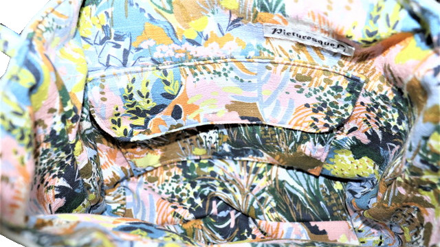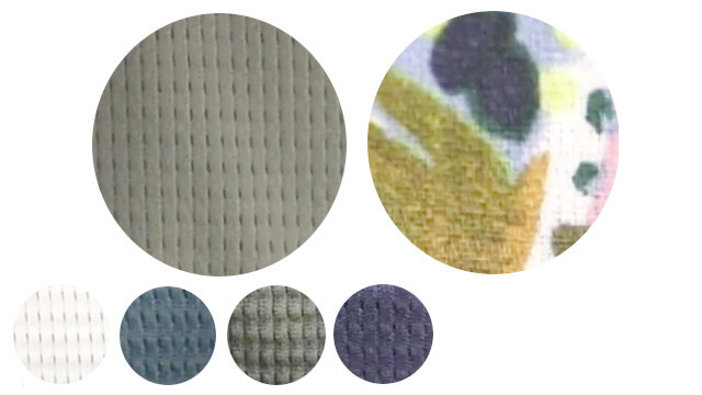 使用生地:表地(4色)-スポーツメッシュ、ナイロン/94%、ポリウレタン/6%、日本製。裏地(マルチ)-ブッチャープリント、綿/100%、日本製。