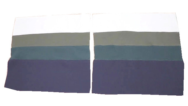 画像の一番左のライトな色はオフもある中、ライトグレー、そして青緑・カーキグリーン・紺と全体で青味の色を美しく作ってくれます。