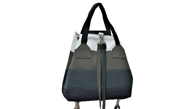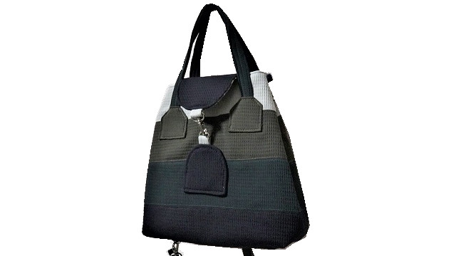このたび、ニット生地の4色のボーダーパッチワークシートをリュックに仕立てました。