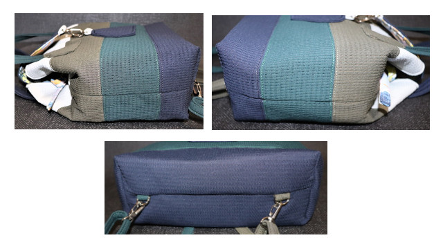 背負う面:ショルダーも左右違うマルチカラー配分。てっぺんと底周辺パーツを濃い色でバランスをとります。