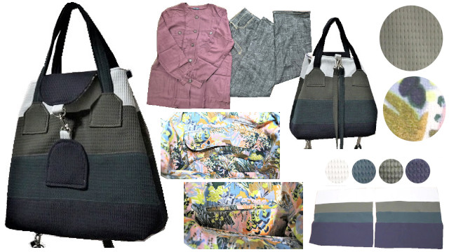 3色以上の多色展開になっている生地は、生地屋様(「大塚屋」様)の展示では横並びで、「まとめて使いたい」と思うマルチカラーの魅力を感じるのです。