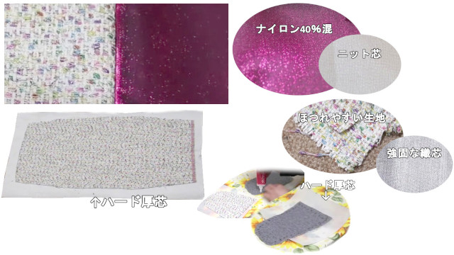 このたびの①では、使用生地に対して望ましい接着芯の対応の場面と、ハード厚芯を設置していく様子をお伝えします。