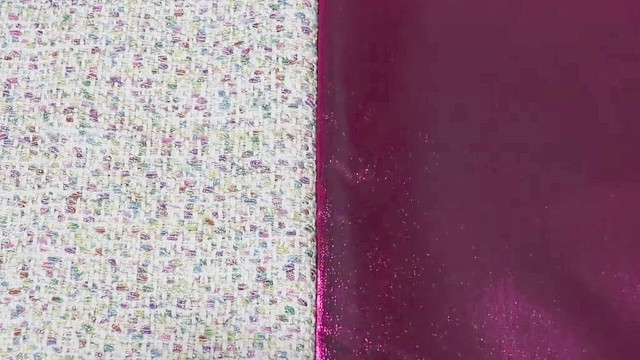 まるで宝石のような美しさ、反面脆く崩れやすいファンシーツイード生地の早めの着手が大切な芯貼り場面