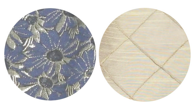 使用生地:表地-ジャカード、アセテート/53%、ポリエステル/27%、ナイロン/20%、イタリア製。裏地-モンキーブリッジスラブ、ポリエステル/100%、日本製。