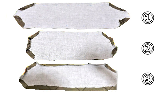 8角形くるみ底板の作り方:「外表」のまま折り込み式で作りました。角が出やすいからです。