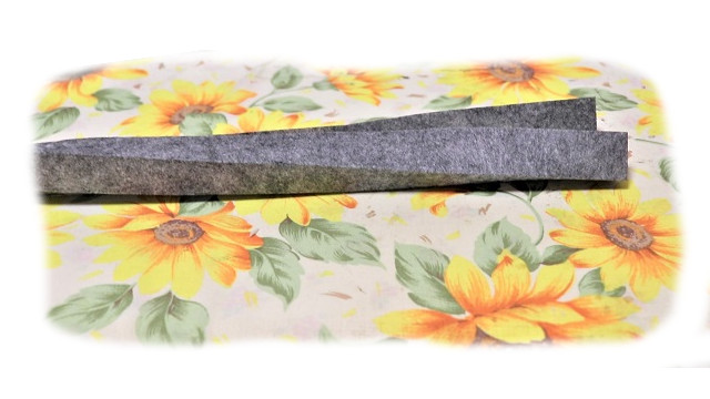 「ソフト厚芯」単独で観音開き折りにアイロンで折っておく点がポイント、生地の方も単独で観音開き折りにアイロンで折っておきます。