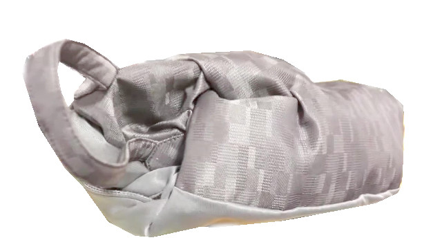 「昆布巻き」の試作品(グレーカーテン地):<サイズ>縦18cmx横24/28cmxマチ8cm。