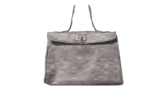 カーテン地で試作のヒネリ錠付き台形ハンドバッグ、蓋は3分の1くらい被る方がバランスが良いことを短か過ぎた視覚的記録が物語る【363】