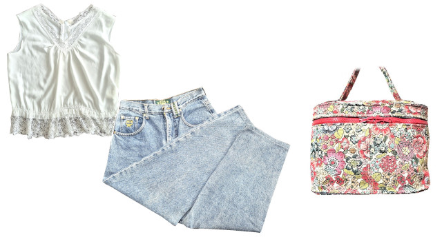 お洋服とのコーデ例:エレガントとカジュアルの中間的なデニムコーデにバッグの柄が映えました。