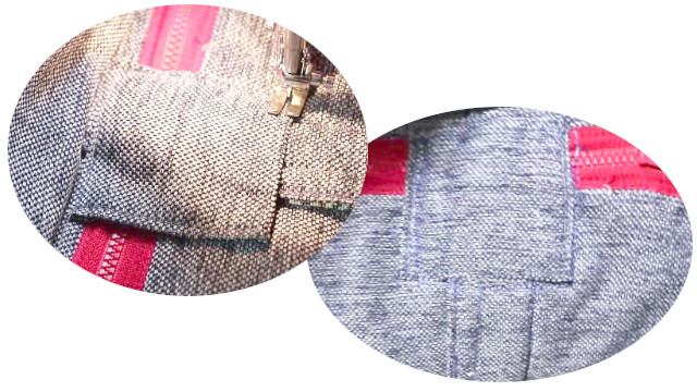まずは、蓋と本体をファスナーを挟みながら合体していきます。