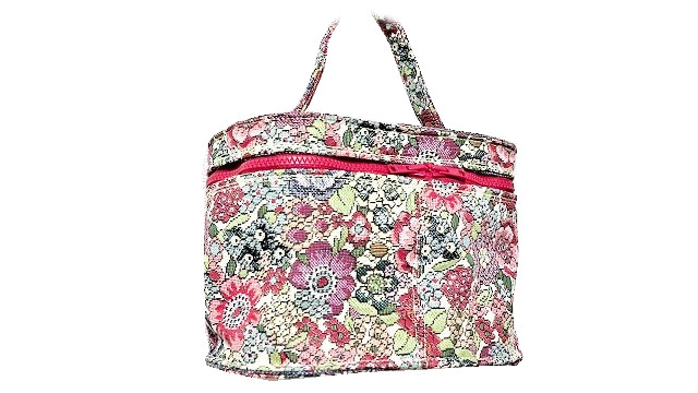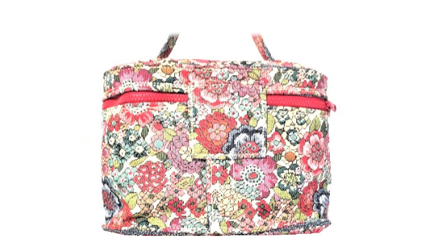 バニティーバッグ完成(原色花柄ゴブラン織):<サイズ>縦15cmx横22cmxマチ13cm。