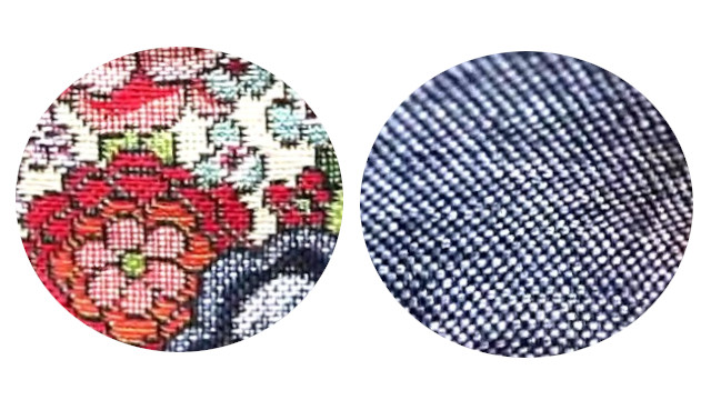 本格的な厚みあるゴブラン織のバニティーバッグ作りは重なり部分がその行く手を阻む、柄を壮大に見せた一重仕立て向きを実感【378】