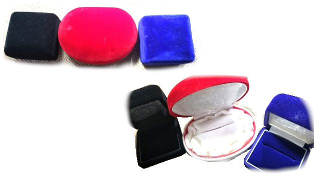 リングケース:ベルベットタイプのカラー展開。リングが時に2個並べて入れられるのが真ん中。
