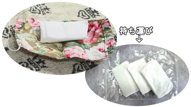 持ち運び用のチャック袋への保管:2時間程度の外回りでひどい日で着用分含めた全4個で事足りました。