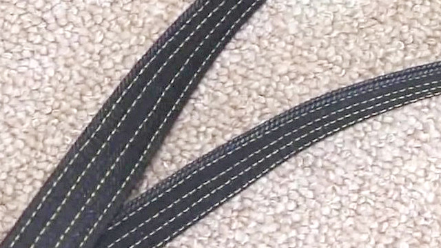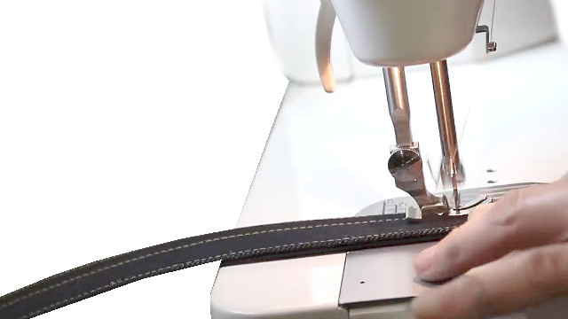 支柱ベルトの4本ステッチの完成:糸調子は合わせても糸目の歪みが見られる点はエレガントになりにくい点。