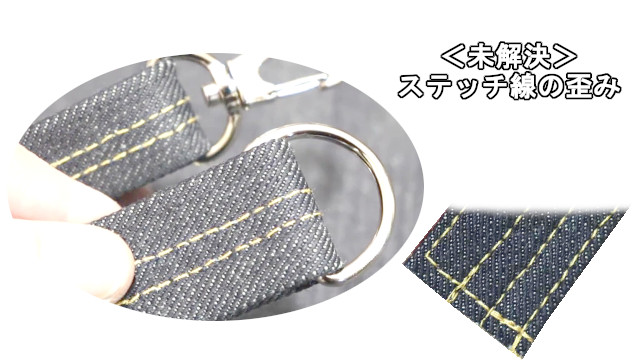 デニムバッグを製作するのも職業用ミシンで行っていますので、デニム専用のミシンでこうした糸目の歪みは解決されていくのではないかと思います。