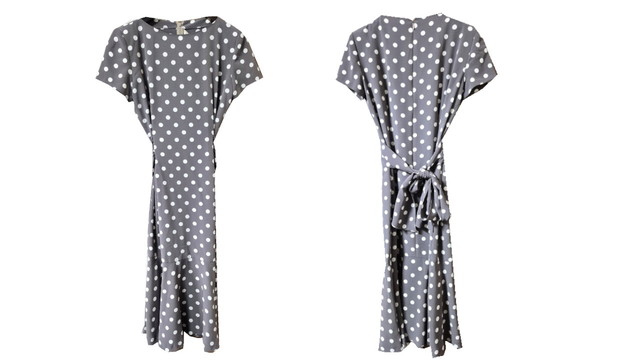 「前開きファスナー付きのウエストゴム」という構造で昭和時代のワンピースであると予測する1つの着眼点になります。