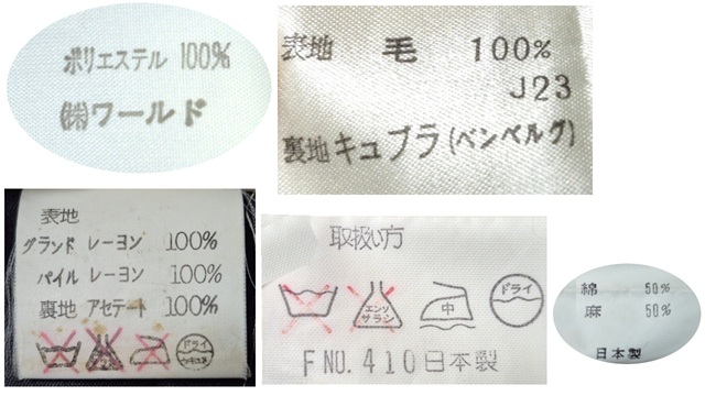 では、ここからは、ブランドネーム・品質表示が教えてくれる情報。。というような切り口で、お洋服以外の内部の「文字」に注目してみます↓。