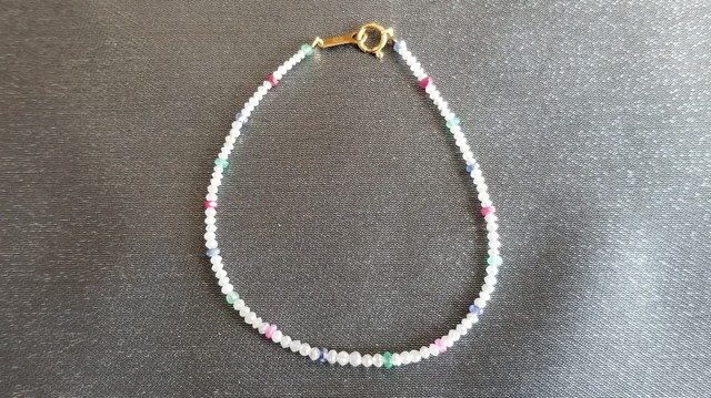 <新40>ブレスレット:K18YG留め具にボタン珠のダイヤモンド5ct分・ルビー・エメラルド・サファイアが点在。