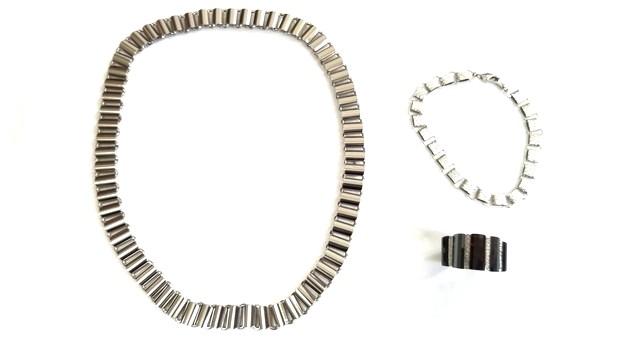 このたびは、ネックレス・ブレス・リングのすべてに縦長モチーフが入ったセットをご紹介したいと思います。