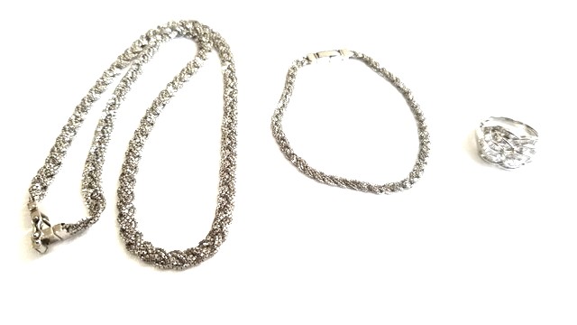 編み込みの元チェーンもネックレスと同じベネチアンですし、編み込みの種類も三つ編みで同じ。