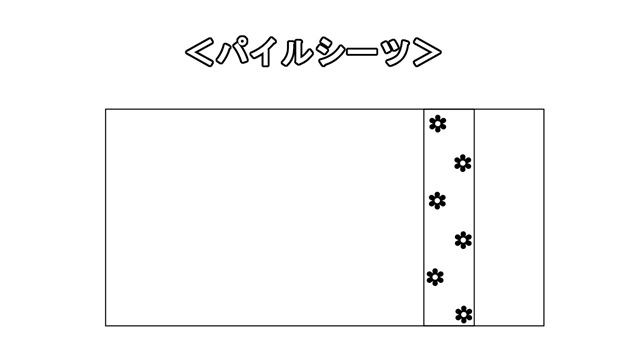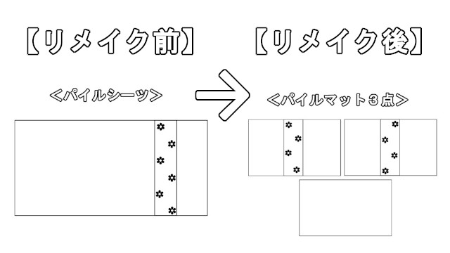 図は、横向きにしていますが、実際に出来上がったリメイク後のマットはこの向きで出来上がりますので分かり易いと思います。