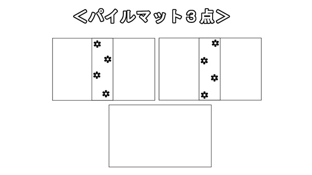 これらを早めに自主リメイクして解決していく計画として、まず1点目シングルの白のパイルシーツから3点のマットを製作したのがこのたびです。