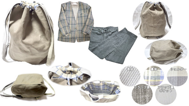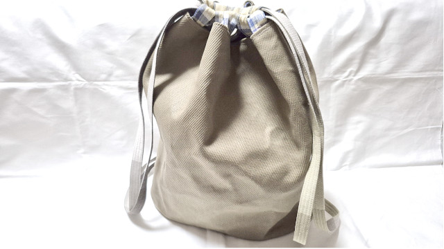 帆布・デニム・カツラギはバッグの材料として注目される素材の定番ですが、更に「ツヤ」が特徴のフランス綾、ナップサックに出来上がった状態を是非ご覧いただければと思います。