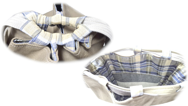 実は、同時進行で本体がマルチツイードの方も完成したのですが、こちらに関してはショルダーの生地選びに失敗、浮いてしまいました。