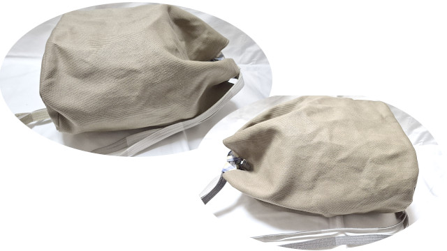 決してたたんで収納してはいけないハードさ、このたびのナップサック製作においてもくるくると丸めた筒形の収納をしてまいりました。