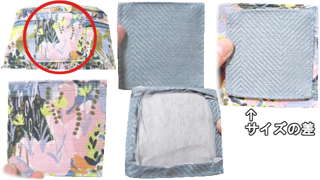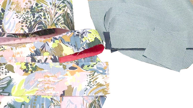 今回、ラメツインクルサテンが少しずつ残っていたところからパーツをとれたのは、もともと生地を残す時に、「横に長く」残していたからです。