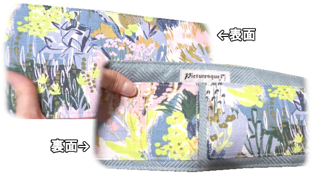 例えば、紺色をマルチカラーのリボンの中から抽出して、薄手のデニム生地を裏地に貼るというアイデアもあります。