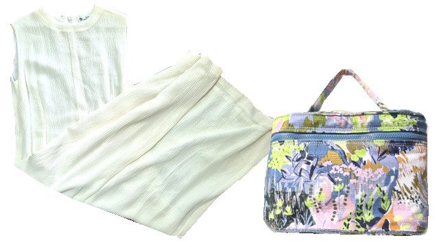 マルチカラーのリボン柄の生地の魅力をたっぷりと引き出すのも、組み合わせの無地カラーであることの証明
