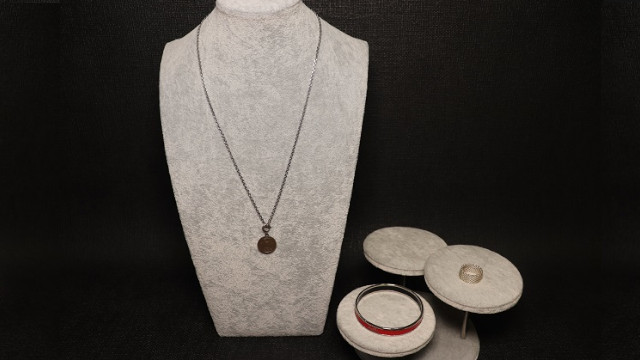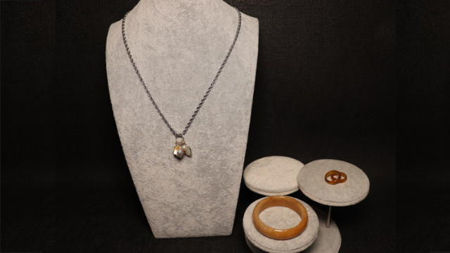 金属チェーンをコンビにされることすらなかなかないこれらのビッグペンダントを、ジュエリーとして完成できないかとアレンジ致しまして装えるペンダントにさせていただいたのでした。