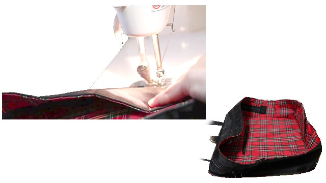 両サイドのステッチは、まず1周ボックス型にステッチを入れた時のものなので、残り2本を目で見て均等に配分していくわけです。